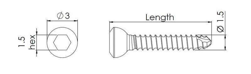 Use of Self Tapping Screws can save considerable time and trauma. Pull out strength is not affected provided the self tapping flutes lie outside of the cortex. Self Tapping Screws are less effective in dense cortical bone. e.g. calcaneus. It is advised that an appropriate tap be available should the need arise. Drill data: Pilot Drill 1.1mm, Clearance Drill 1.5mm.