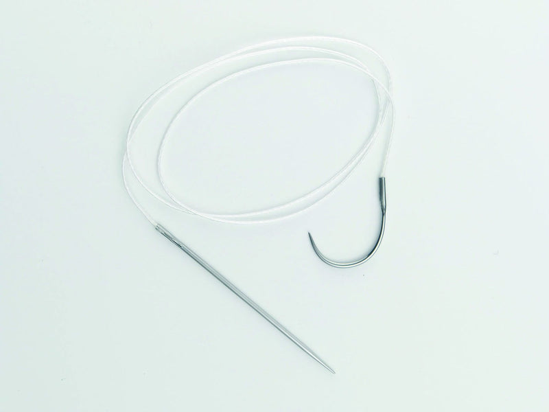Extreme strength, minimal stretch and good abrasion characteristics make LigaFiba® an ideal material for lateral sutures. The loop may be either tied or crimped at the end of the procedure. LigaFiba® for any given diameter is more than twice as strong as monofilament nylon. Lateral sutures are supplied sterile with size appropriate cruciate needle on one end and a straight round bodied needle at the other. Supplied Sterile.