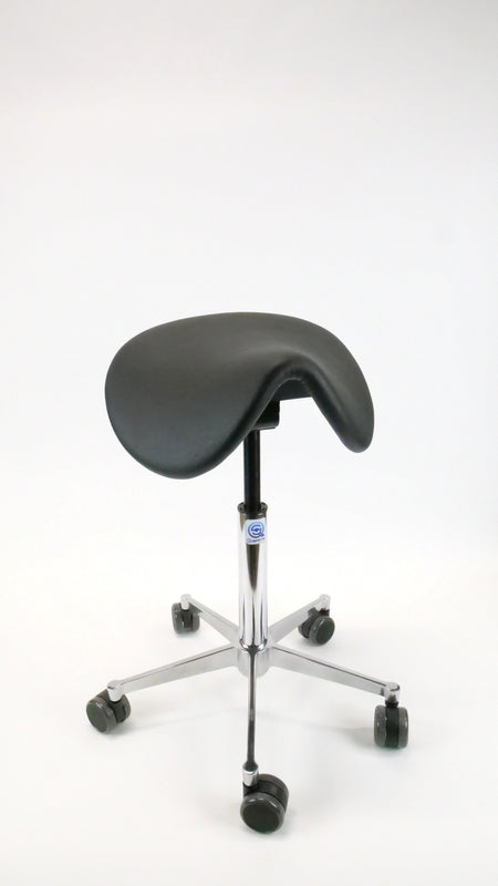 VetSeat satulatuoli on kotimainen työtuoli. Halkaisijaltaan 52 cm ristikon alla on 5 tukevaa 65 mm pyörää. Pehmustettu satulaistuin on verhoiltu mustalla aidolla nahalla. Istuinkorkeus säätyy 58–77 cm. Balance-malli on lantiota mobilisoiva.