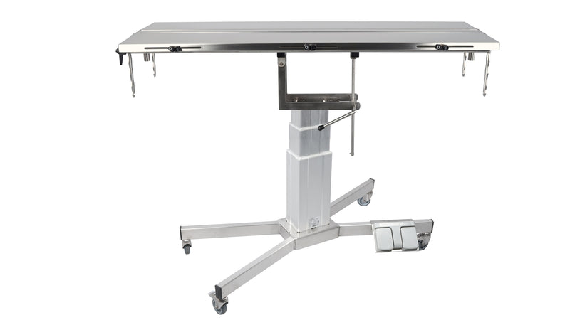 The Vetinox Surgery table with central electric column is practical and robust, designed for daily surgery. Made in France from quality materials, it allows surgery to be performed as close as possible to the patients, in a variety of configurations. The table has a height adjustable electrically, with a manual Trendelenburg/anti-Trendelenburg setting. The V-top version allows a perfect fit and optimal access including for new surgeries.